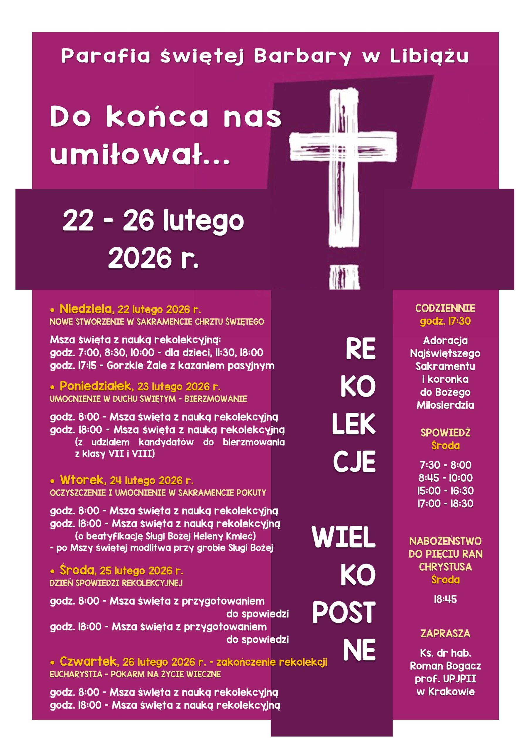 (W okresie wakacyjnym spowiedź w tygodniu 30 min. przed Mszą Świętą)